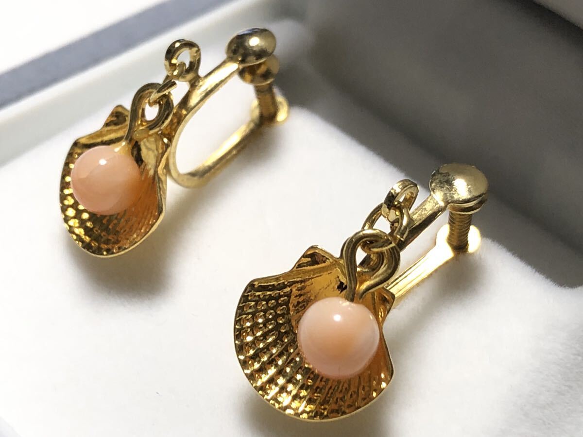 【T1125】 K18 サンゴ付き イヤリング 約2.8g K18刻印 珊瑚 金 アクセサリー アンティーク レトロ コレクション