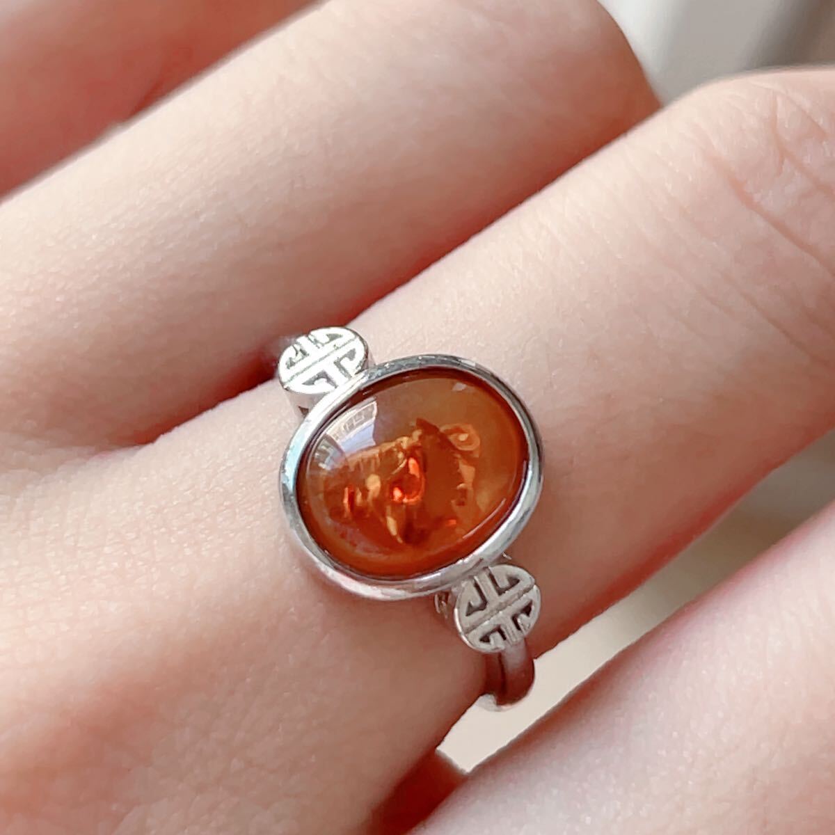 【26】13号 琥珀 こはく アンバー SILVER シルバー 925 指輪 リング アクセサリー TIA