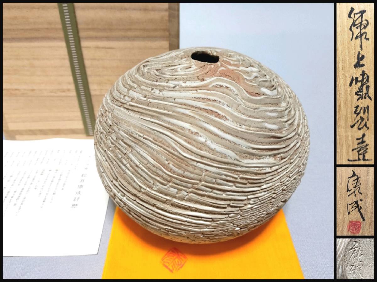 【 松井康成 】最上位作 練上嘯裂文壷 優品! 人間国宝 共箱 保証