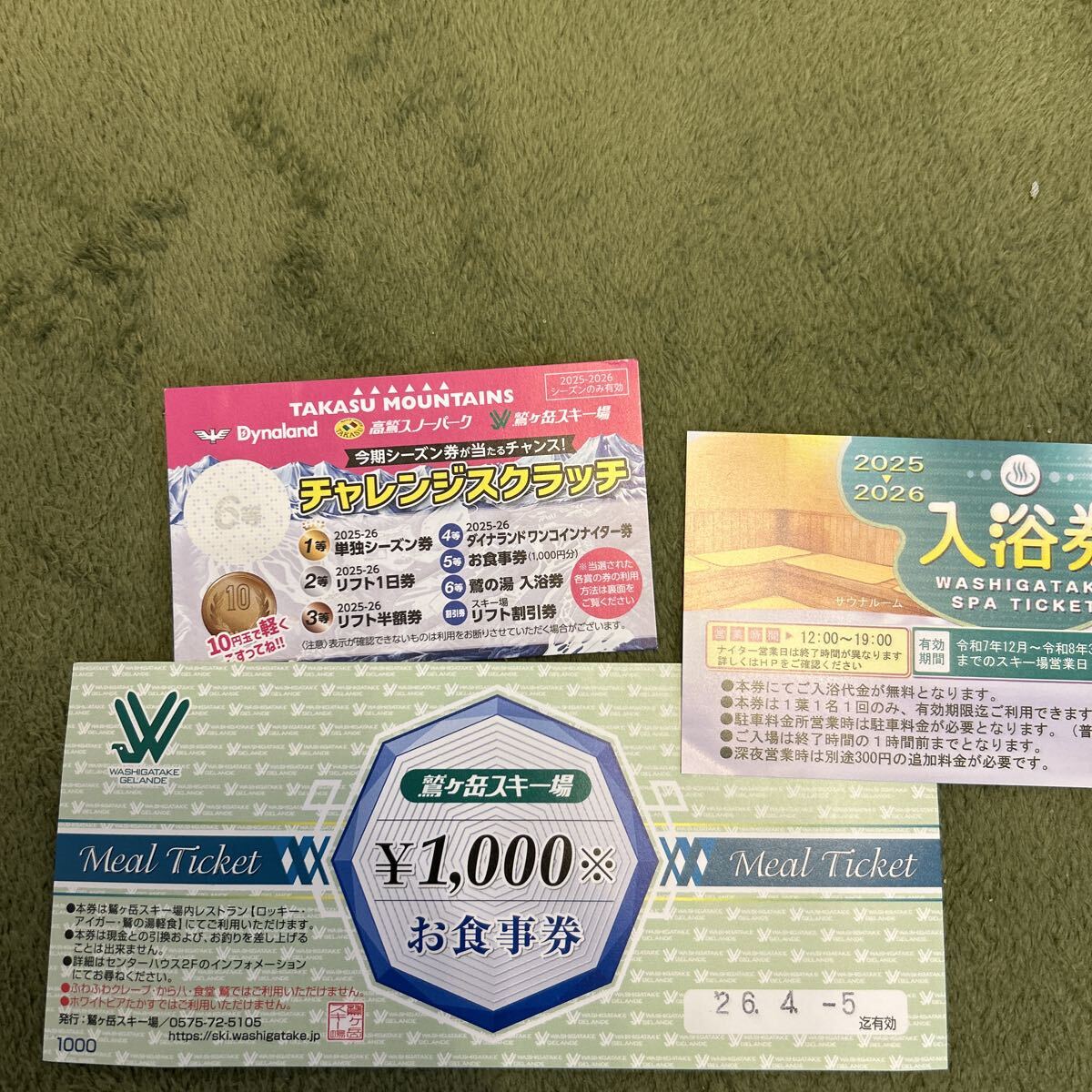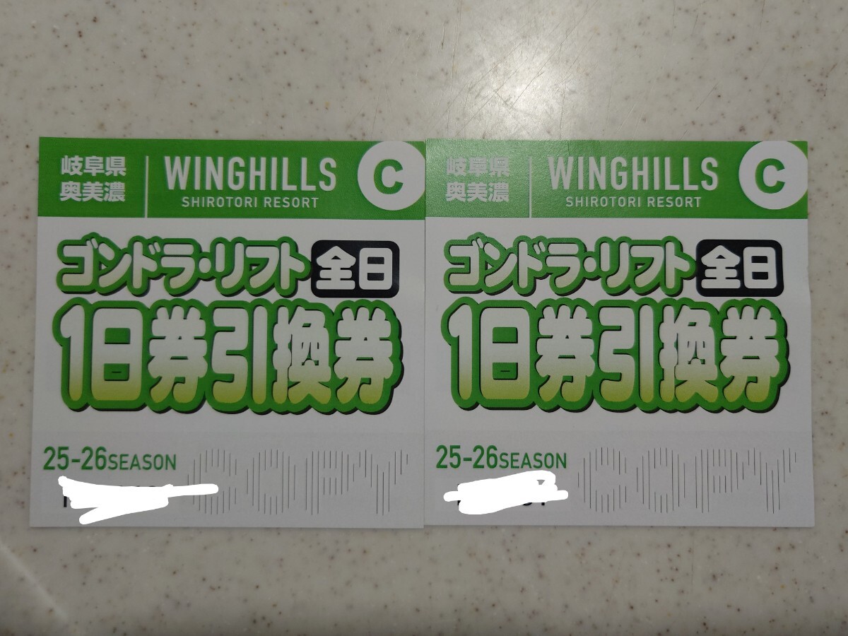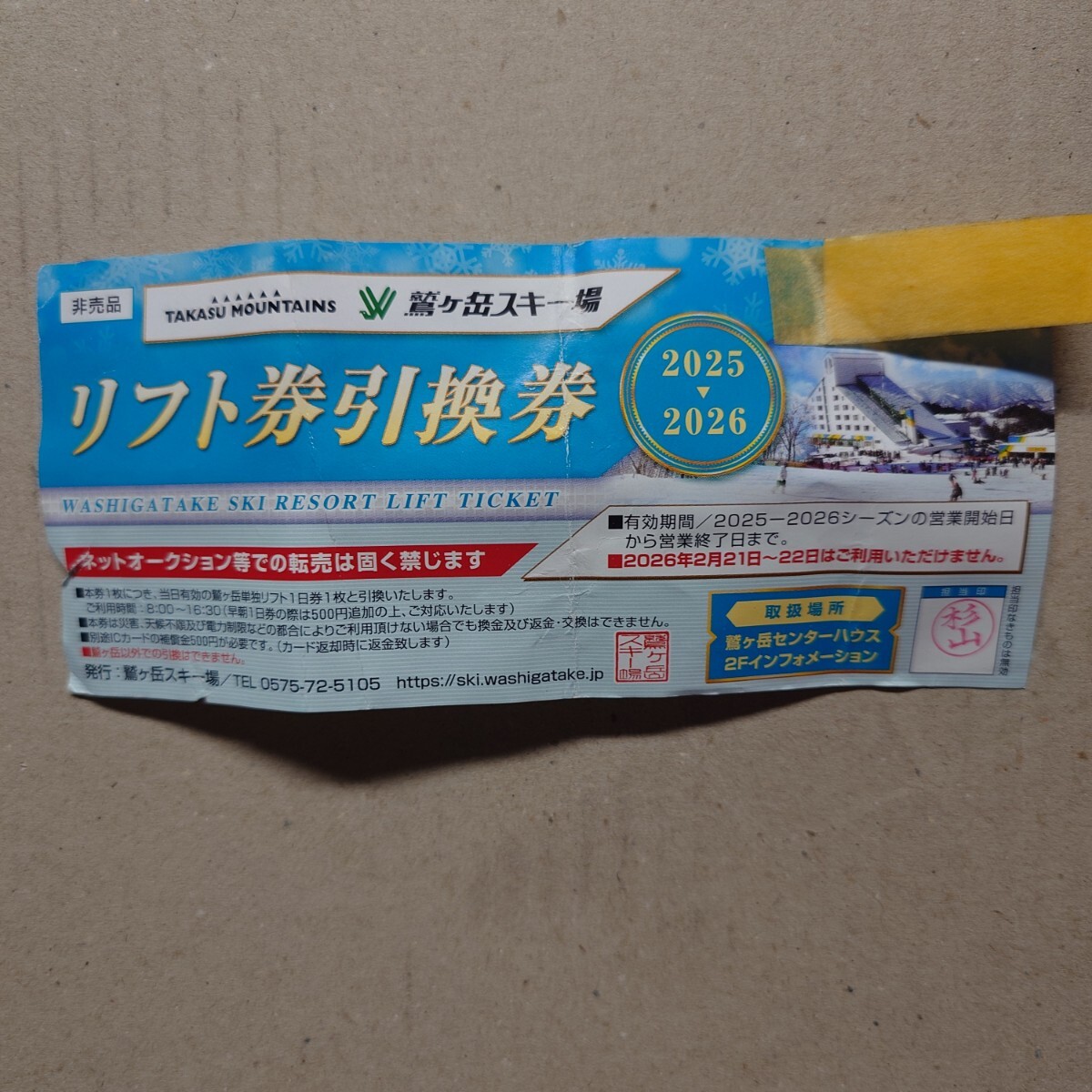 25-26 シーズン 鷲ヶ岳スキー場 単独 リフト1日券 引換券 送料込