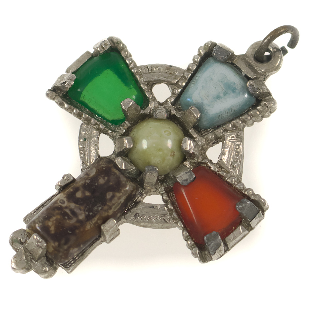 UK2905◆ ケルト十字 クロス うすいグリーン系マーブルストーン 色石 英国 イギリス ◆ ヴィンテージペンダント ネックレスに ◆